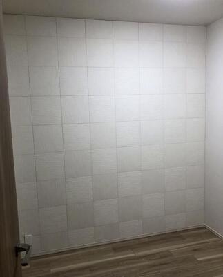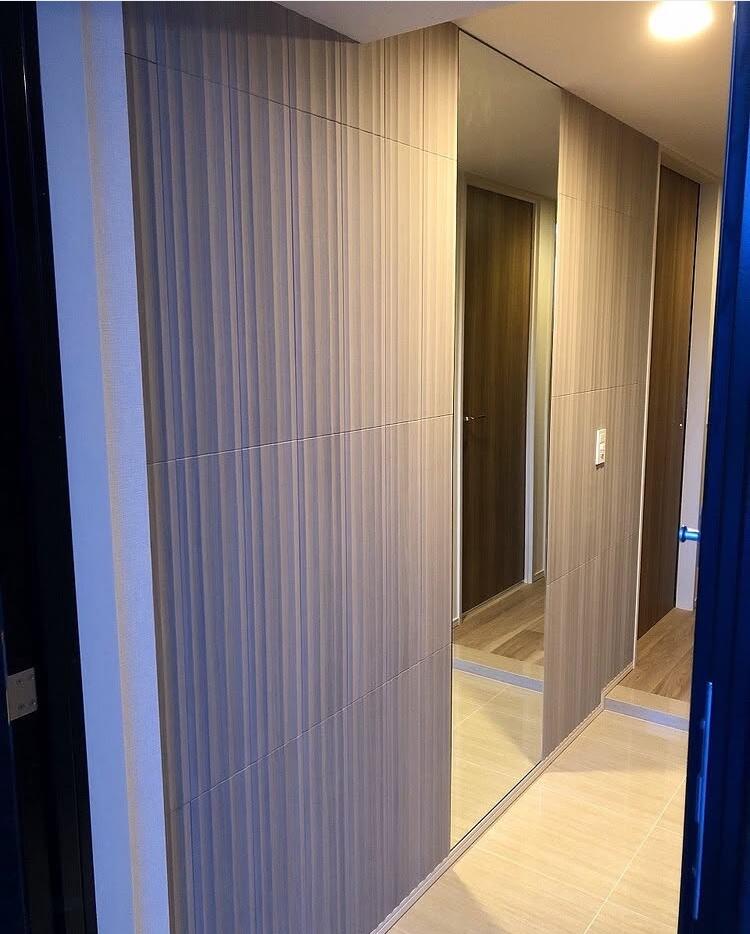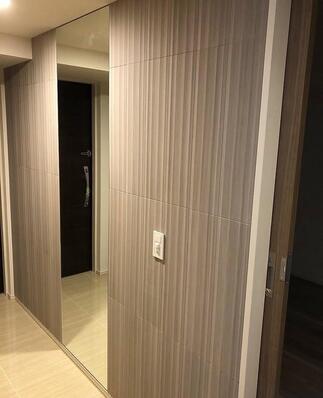 「玄関ホールと寝室にエコカラット。玄関ホールには姿見の鏡を取付てほしい。」と、工事のご依頼をいただきました。