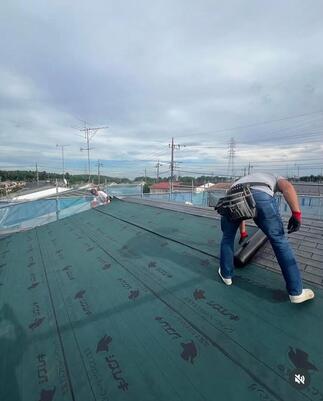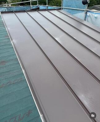 既存の屋根を撤去せずに上から金属板でカバーするこの工事は、短期間で施工でき、廃材も少なく環境に優しいのが特徴です。