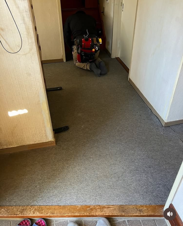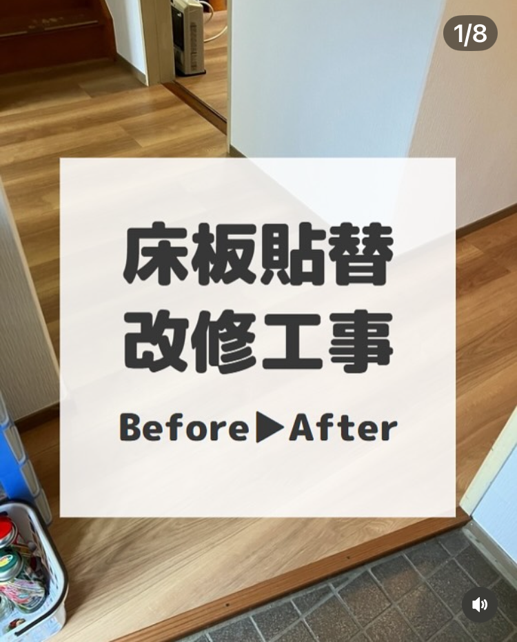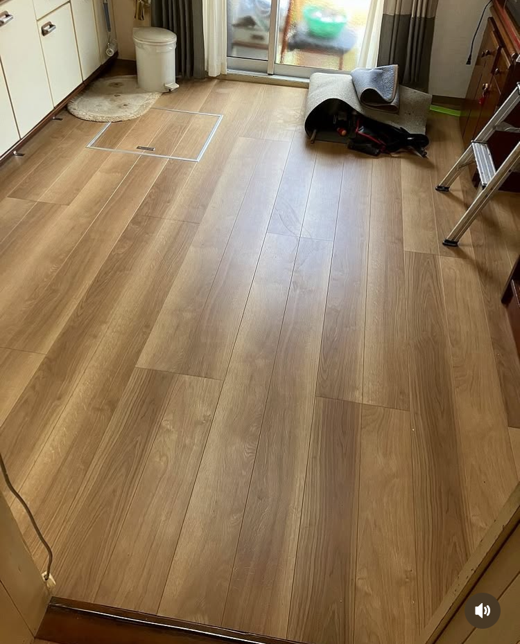 M様より、「長年使用してだいぶ傷んだカーペットとクッションフロアを滑りづらいフローリングに変えてほしい」 とご依頼いただきました。