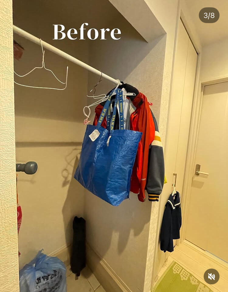 今までは、突っ張り棒や床のスペースに物を置いている状態でした。