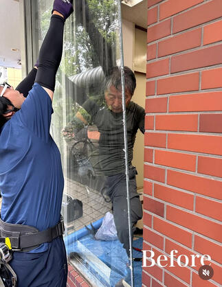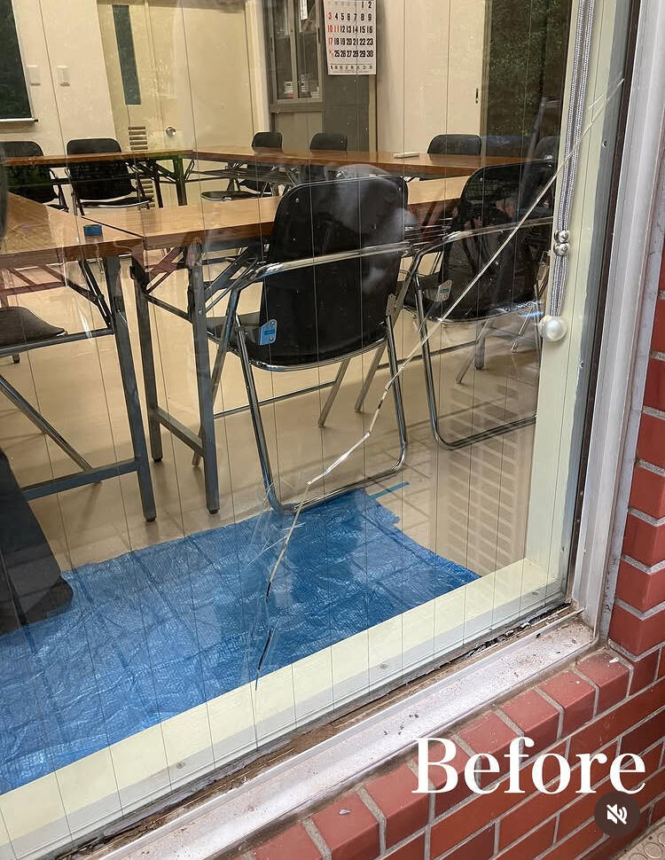 S様から、会議室の窓ガラスが割れてしまい、交換してほしいとお問合せいただきました。