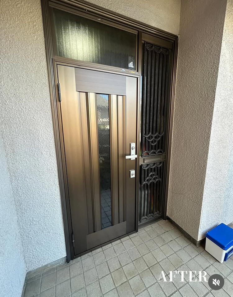 T様より玄関ドアが開きが悪いとお問い合わせをいただきました。 見たところ、劣化により扉の枠が歪み開きが悪くなっていました。 修繕よりも交換をご希望との事でしたのでLIXIL製の”クリエラR”をご提案、設置させていただきました。 工事も半日で完了したのでお客様にも大変喜んでいただけました。 玄関ドア交換工事もぜひ神野工務店にお任せください。