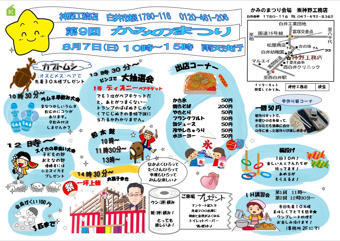 8月7日(日)に神野工務店にて第9回かみのまつりを開催致します。