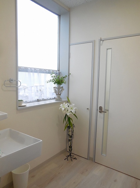 古いテナントビルのトイレは男女兼用で、40数年前の姿そのままでした。清潔感のあるトイレ空間へ、との要望があり、そこに重点を置き、提案・工事をさせて頂きました。白を基調とし、明るく清潔感のある空間に仕上がりました。