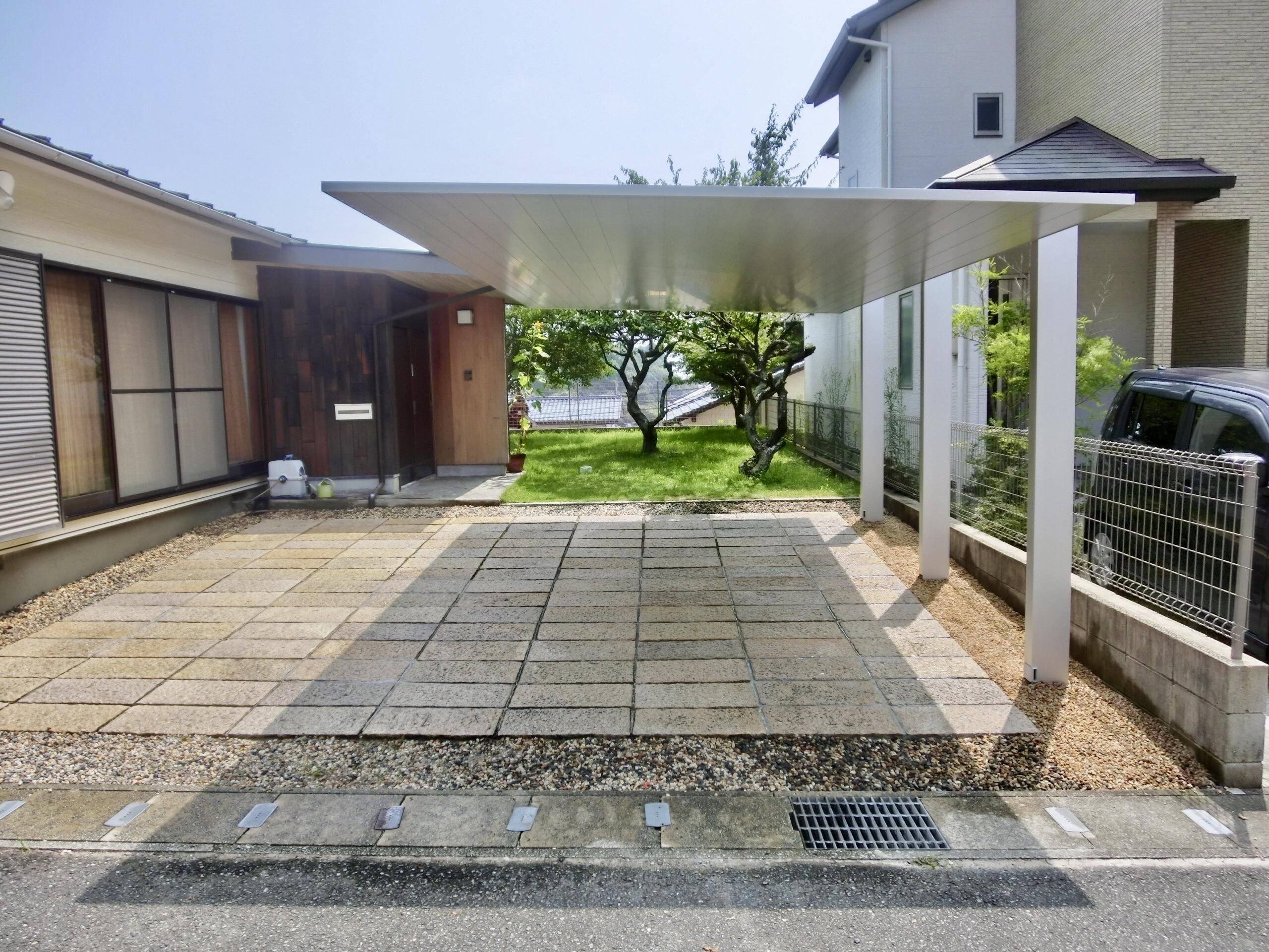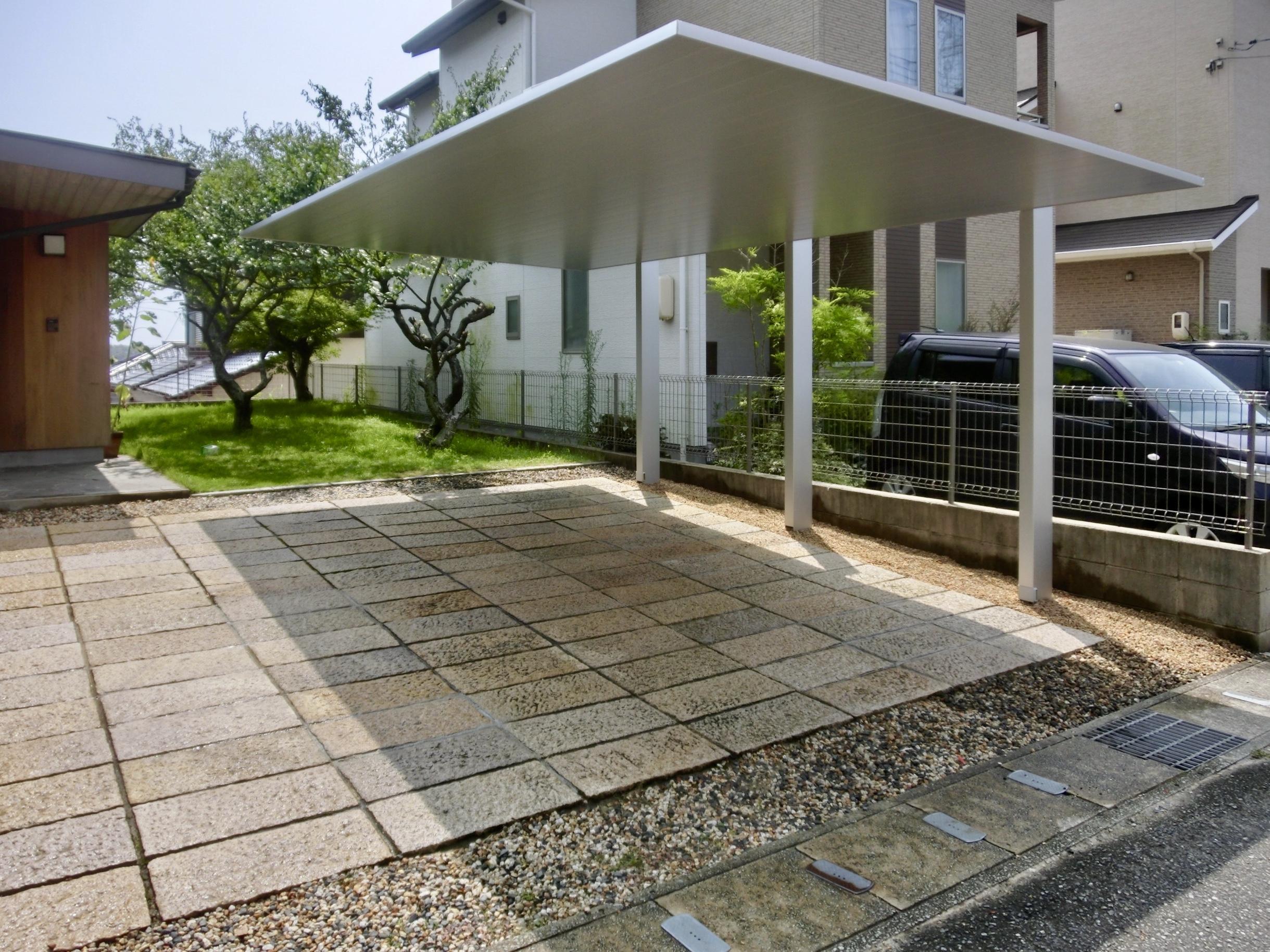 雨ざらしにしている愛車を雨や紫外線から守りたいとのご要望でした。 LIXILの最上位クラスのカーポートSCは、グッドデザイン賞をとっているだけに、デザインのシャープさと機能美は抜群です。 屋根材も含めアルミ型材で出来ていて、金属光沢を抑えたマットな質感です。 太陽の熱線や紫外線を遮り、夏場に車内が高温になるのを防ぎ、大切な愛車を色褪せや日焼けからも守ります。