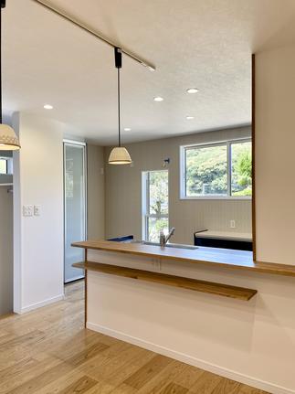 家族とつながるオープンキッチンなダイニング・キッチン。奥様が作られた理想のプランが実現しました。