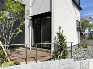 シンプルなデザインの新築住宅を生かした素材、植栽でプランしてほしいとのご要望でした。
