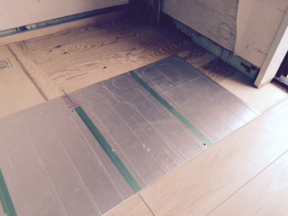 今週は、床暖房(温水マット)敷込からスタートです。並行して大工さんがフローリングを貼っていきます。