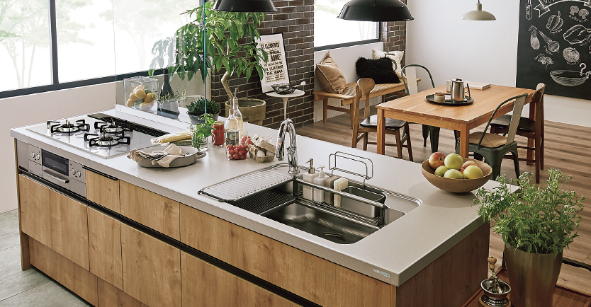 LIXIL アレスタ:オープン対面キッチン アイランド型(PLAN1)