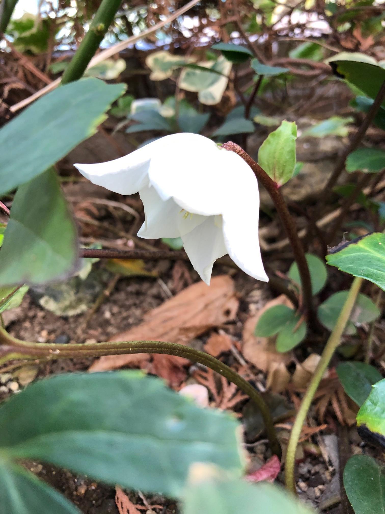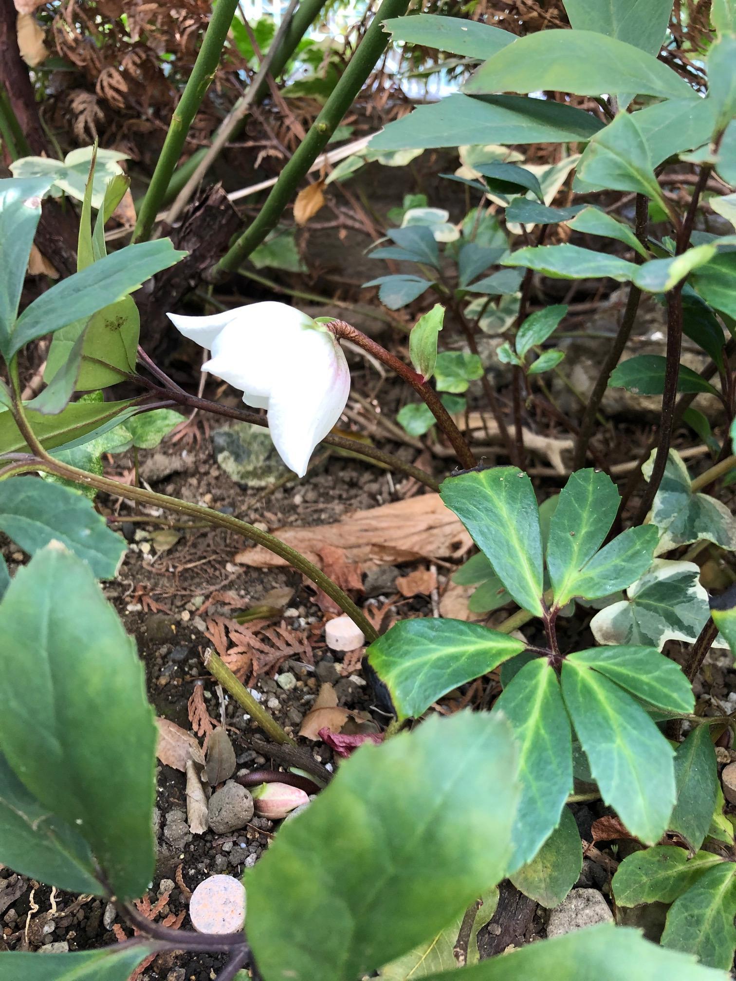 やっとですが、庭植えのクリスマスローズのお花が咲きました。
