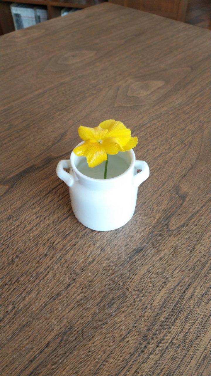 先日、かわいらしい器に入ったプリンをいただきました。器は一輪挿しにしました!