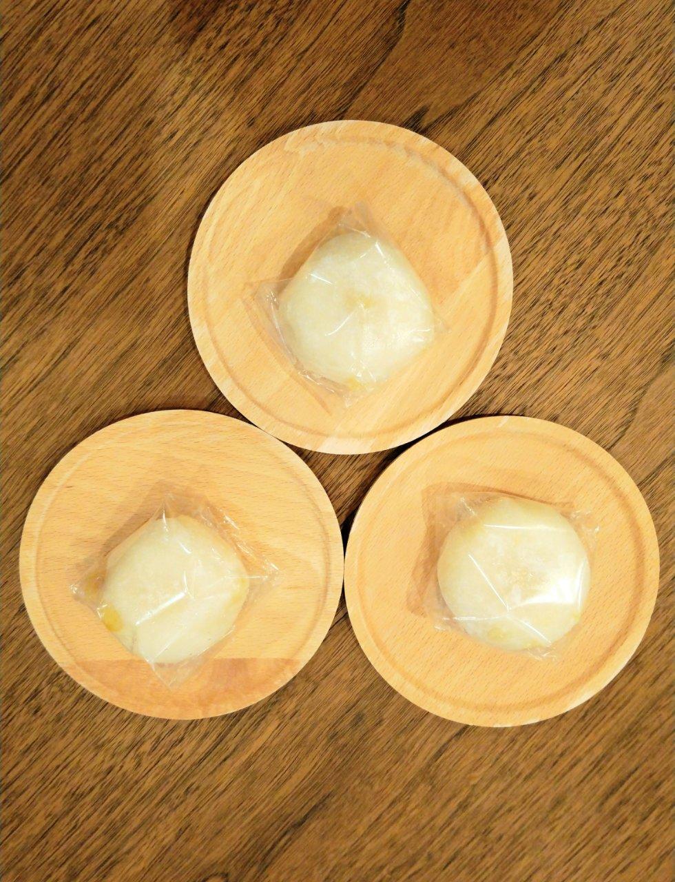 もちもちっとしてコシのある食感のおもち♪まんまるです。