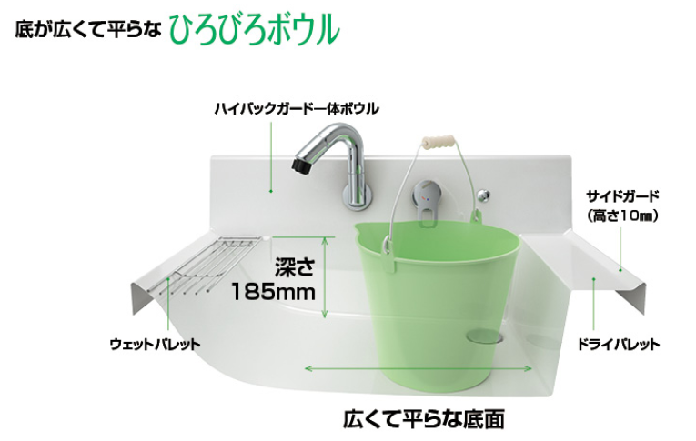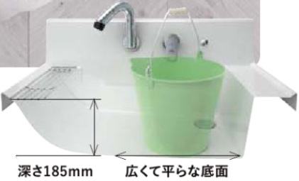 バケツの水汲みや衣類のつけ置きはもちろん、お子様やご夫婦2人並んでの身支度もしやすいです。