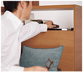 座ってすぐ使いたいモノは、すべて手近に置いておくことができます。