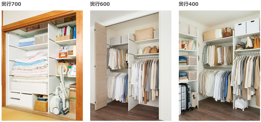 収納するものに合わせた高さや奥行きスペースをつくることが可能なので、