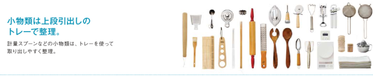②の引き出しにはシンクや調理スペースで使う道具類を↓