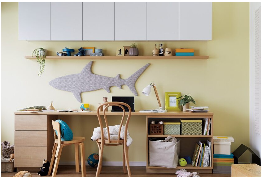 子供たちのおもちゃ類はデスク下にと、収納も共有。