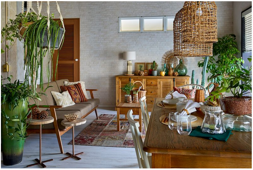 ナチュラルな素材でぬくもりを感じる空間にグリーンな植物を合わせて