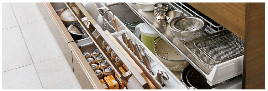 LIXLのキッチン収納は、よく使うものや調理道具を使う場所の近くに効率よく