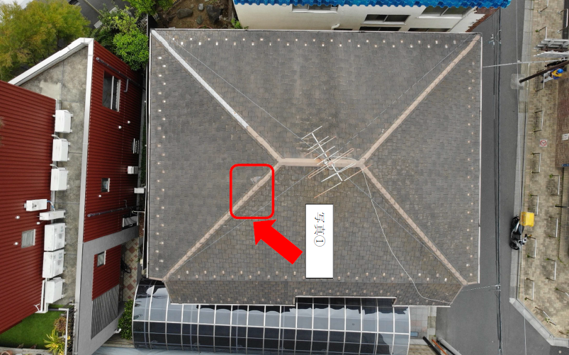ドローンで上空から屋根を調査します。傷んでいるところを早く正確に見つけることができます。