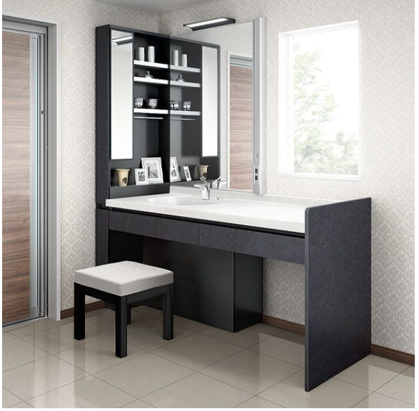 まるでホテルのような洗面化粧室。このドレッサーなら、朝起きるのも楽しくなります。