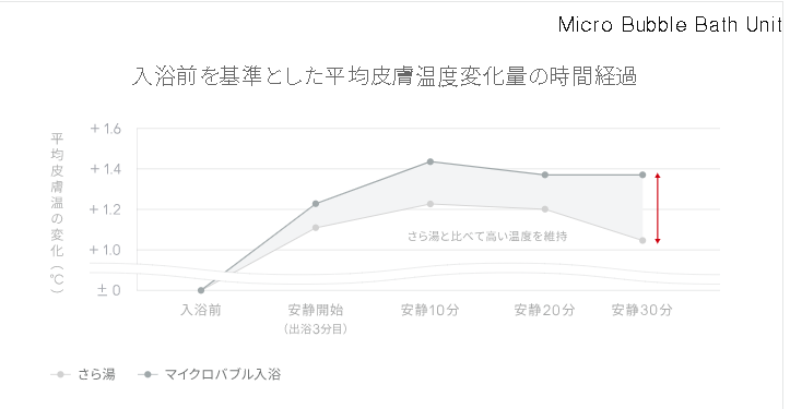 全身を包み込む泡によって、お湯の熱が芯まで伝わり、湯あがり後の温かさを持続します。