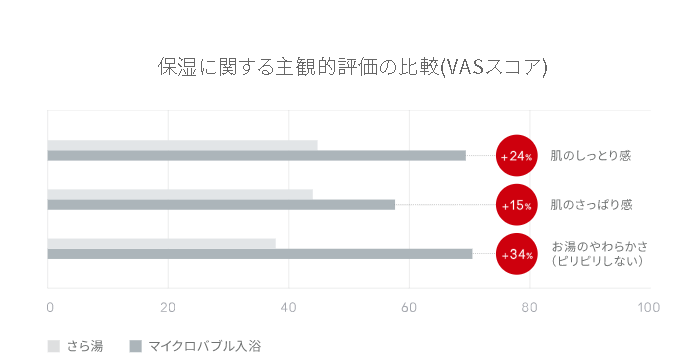 マイクロバブルの微小な泡が皮膚表面の汚れをやさしく洗浄。さら湯のピリピリ感をなくし、なめらかな湯ざわりと肌のしっとり感を感じていただけます。