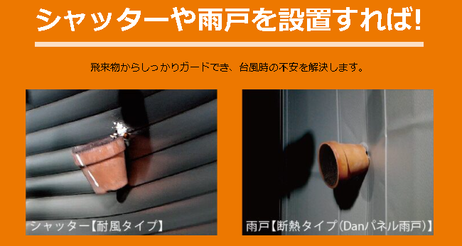 飛来物からしっかりガードでき台風時の不安を解消できます。