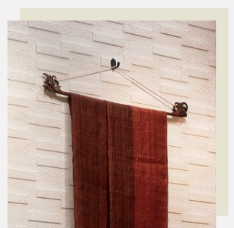 壁・床だけでなく、トイレ本体もアースカラーでまとめることでリゾート感を演出。タオルリングと紙巻器はカッパーを使い、こだわりの空間に。明るすぎない照明使いもポイントです。