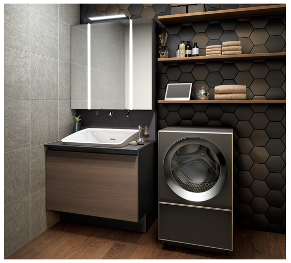 新しいコートを着てお出かけしたくなるこの季節、身支度にもこだわるシックでグレード感のある洗面空間はいかがですか。