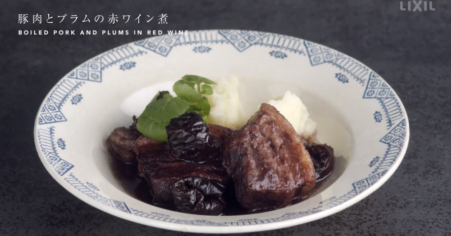 リシェルで作ってくれたメイン料理は、豚肉とプラムの赤ワイン煮。お肉が柔らかくておいしそう。そのほか志麻さん定番の野菜スープやいんげんのクリームチーズ和えなどどれもおいしそうでした。