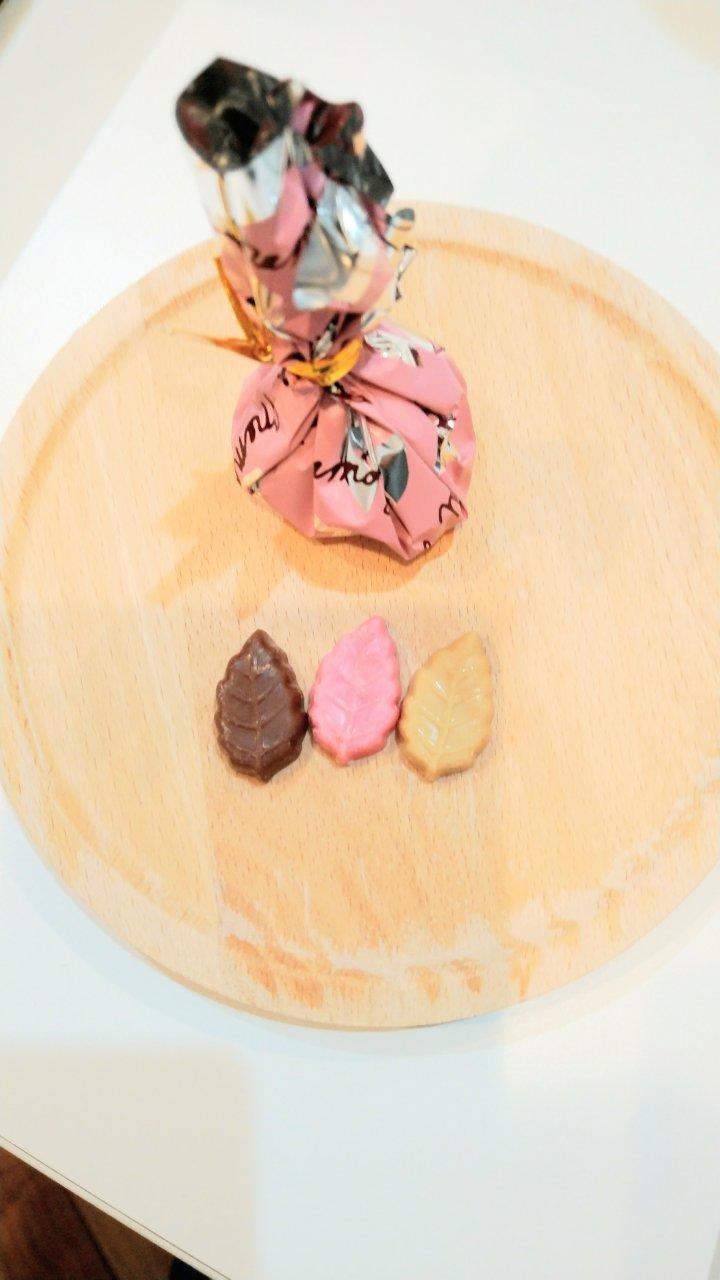 一覧へ戻る今日のおやつは、モンロワールののかわいらしい木の葉の形をしたチョコレートです。