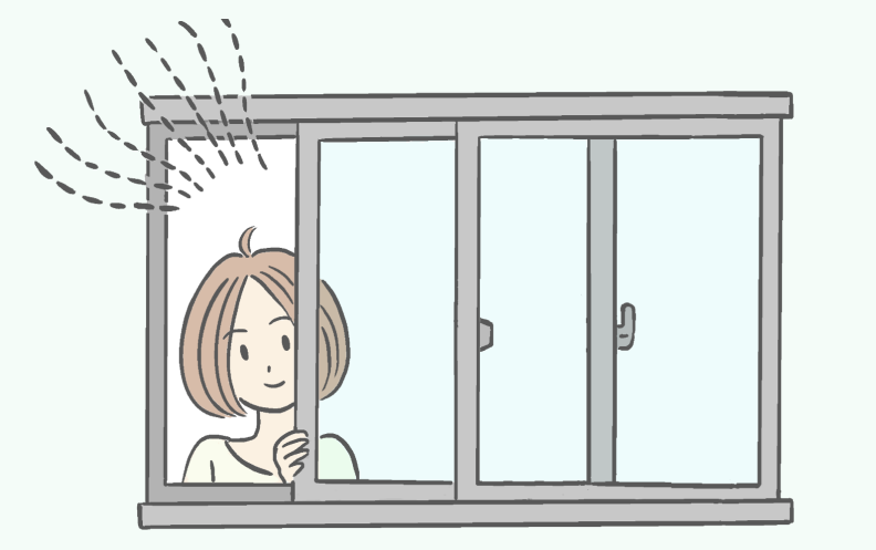 窓を開けて換気をするときの目安は、1時間に5~10分程度といわれています。ただし、これは風の通り道をしっかり確保していることが前提。冬は、窓を長時間開けておくことで室温が低下し体調を崩す要因にもなりかねませんので、下記の3つの窓テクニックを参考に効率的に換気するように心がけてください。