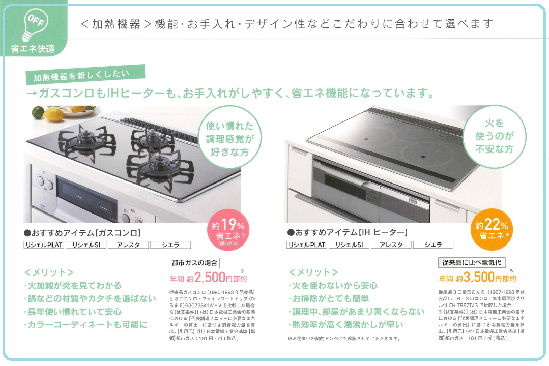◇省エネ快適!「加熱機器」機能・お手入れ・デザイン性などこだわりに合わせて選べます。