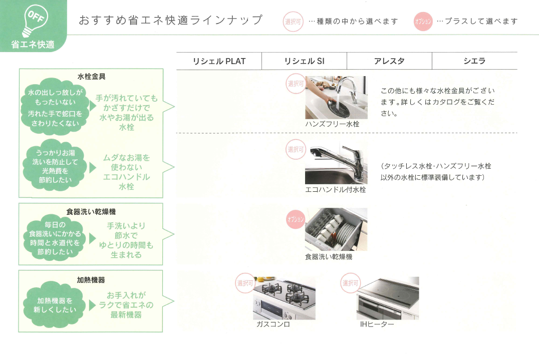 省エネ快適なキッチンアイテムラインナップのご紹介です。毎日、快適に暮らしながら省エネ対策ができます。