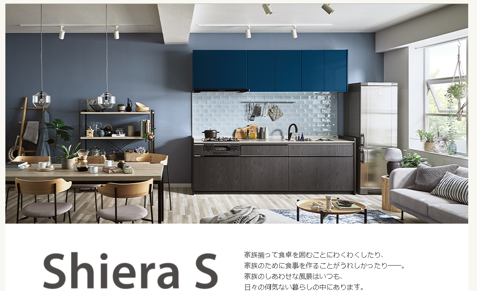 システムキッチン「シエラS」。どんなインテリアにもマッチするシンプルさと品質を大切にしたシステムキッチンです。シエラSのカラーシュミレーションをお試しください。
