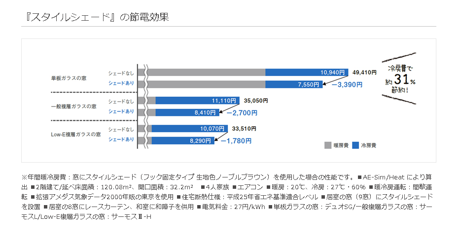 ③「スタイルシェード」窓から侵入する太陽の熱を83%カット。冷房の使い過ぎを抑え、約31%の節約に。