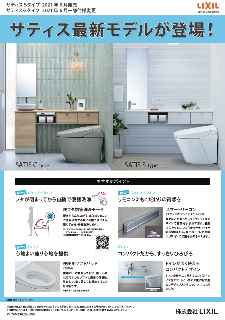「フタを閉めてから流したい!」のニーズにお応えして、サティスは2021年6月より「便フタ閉後洗浄モード」を搭載しました。快適度アップです!
