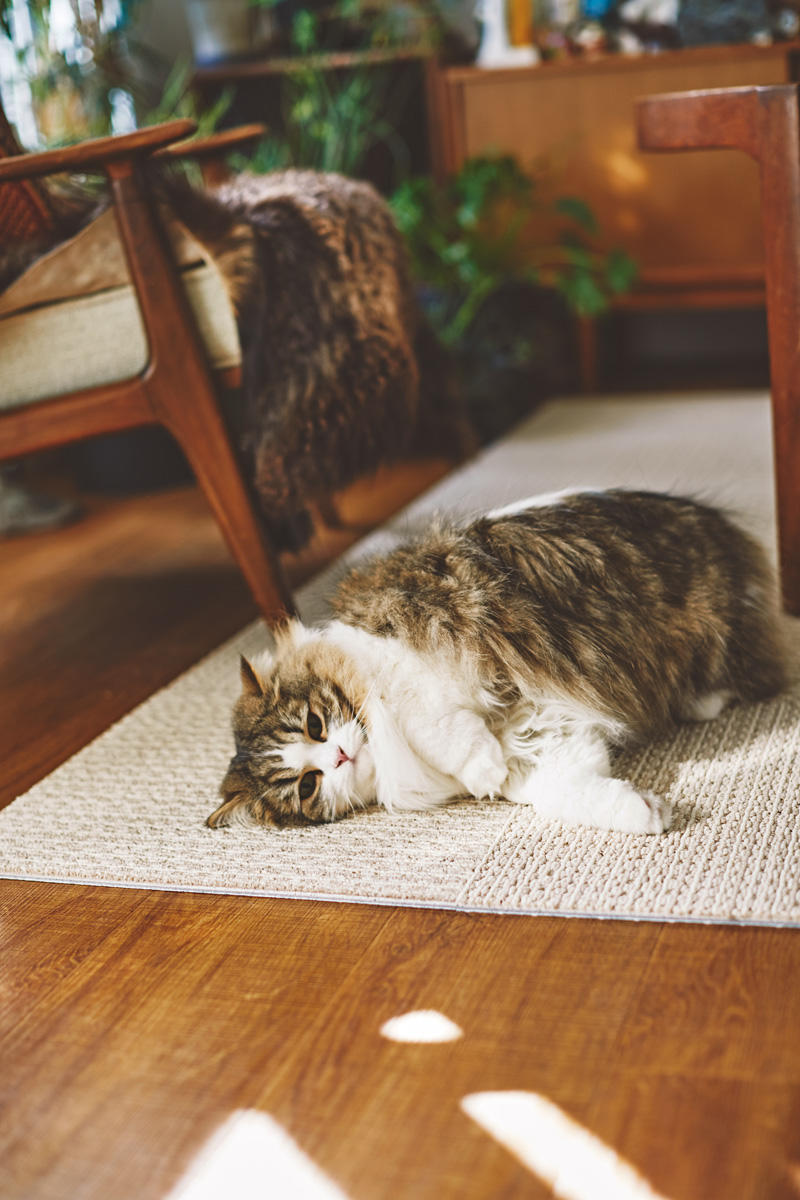 ペットにもおススメです。犬や猫は、フローリングで滑ってけがをすることもあります。クッション性が高くてズレないファブリックフロアなら、足への負担も軽減。