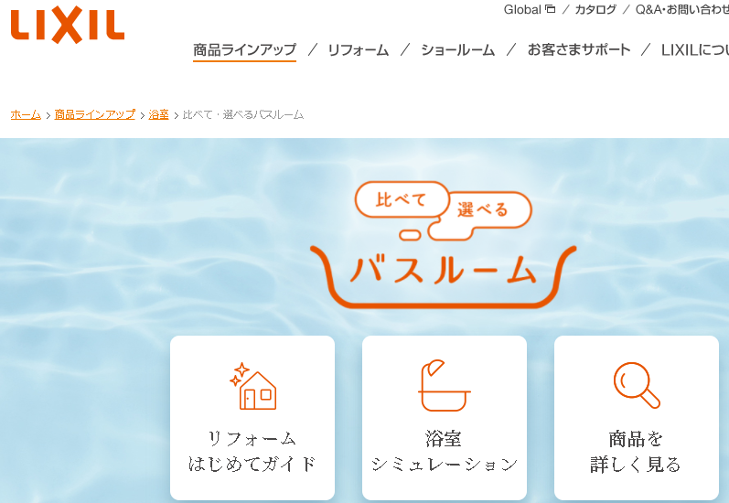自分にぴったりのバスルームを見つけましょう!比べて選べる「浴槽シュミレーション」や「初めてのリフォームガイド」など気になるコンテンツをぜひご利用ください。↓↓をクリックしてご覧ください。