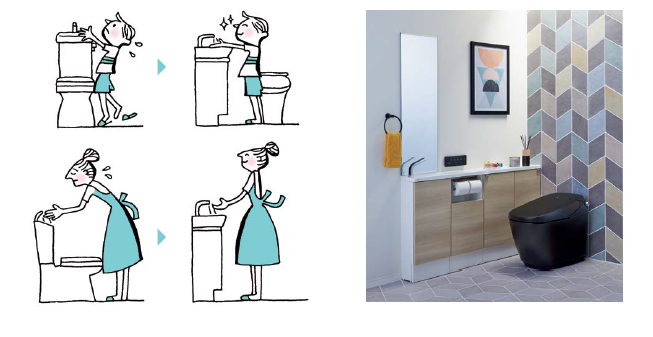 手洗い器を便器とは別の場所に設置することで、さまざまなメリットが生まれます。子供も大人も楽な姿勢で手洗いができるので、周囲に水滴が飛び散ることもすくなく清潔さを保持。自動水栓にすれば水洗器具に触れる必要もなく、接触への不安も減らせます。