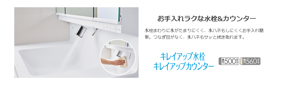 お手入れ楽な水栓&カウンター「キレイアップ水栓 キレイアップカウンター」