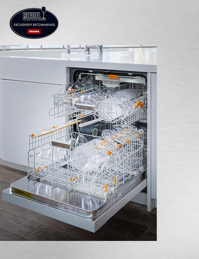 ワイングラスの名門 リーデル社はMiele食器洗い機を推奨。繊細で高価なワイングラスを食器洗い機で洗浄できますか?Miele食器洗い機ならばもちろん、申し分なく洗い上げます。Mieleはグラスケアに関してもスペシャリストです!