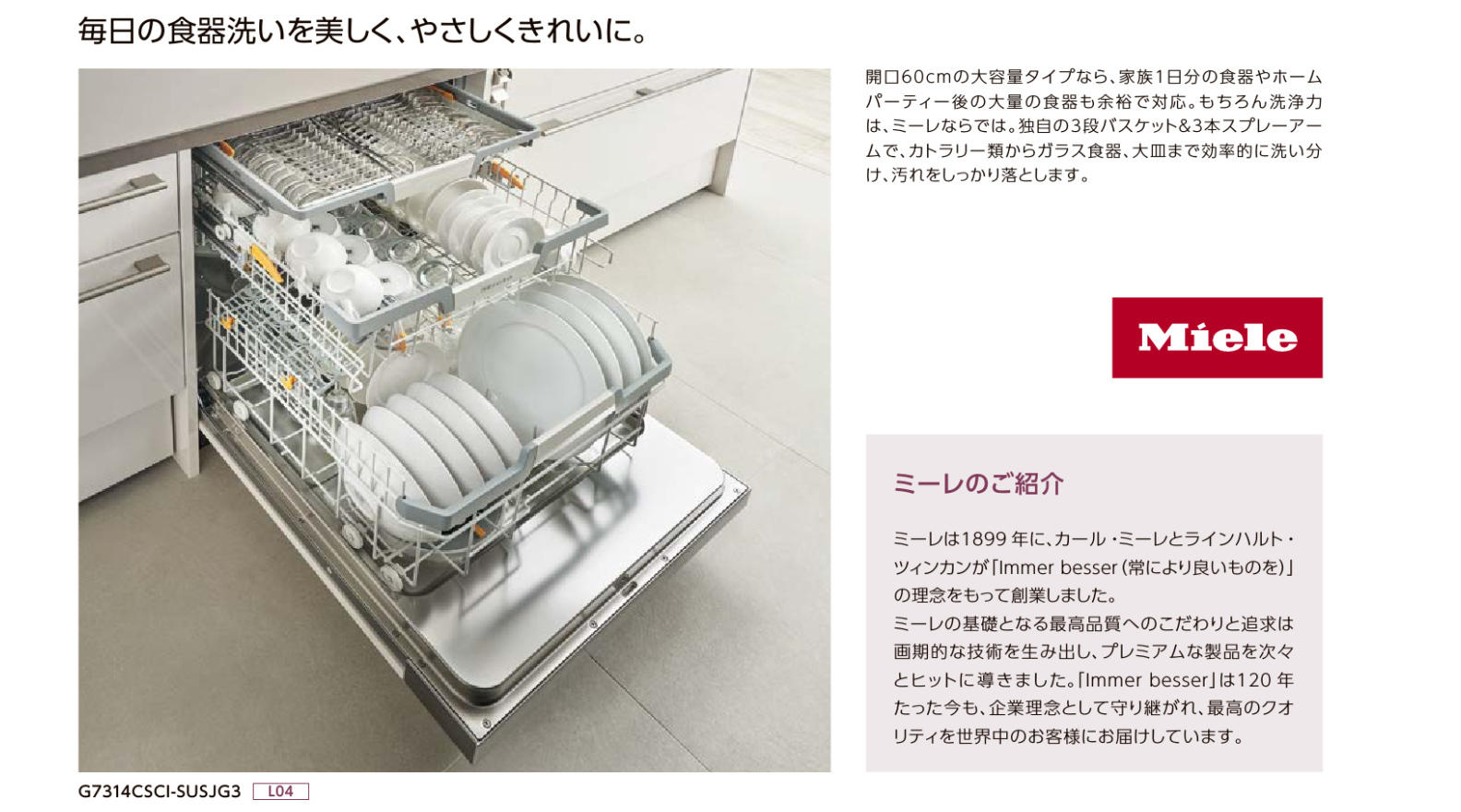 新しいキッチンには、「ミーレ製 食洗機」がおすすめです!なんと言っても大容量!一日分の食器洗いがまとめて1回で済みます。