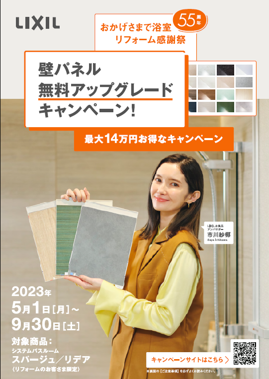 LIXIL 浴室 壁パネル 無料アップグレードキャンペーン !! 定価最大14万円お得なキャンペーン です!