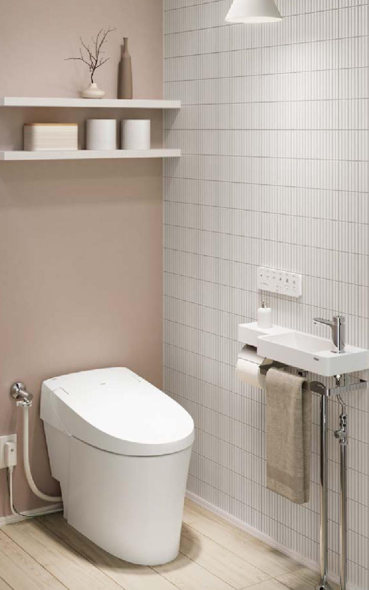 すみずみまで"好き"を散りばめた空間。グレージュカラーを楽しむトイレ空間のご紹介です!トイレのデザインを中心に、壁や床、手洗に至るまで、グレージュカラーをミックスコーディネート。