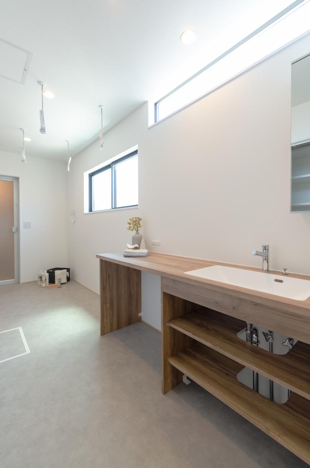 お風呂、洗面脱衣所、洗濯機を一直線に配置し洗濯のしやすい間取りが洗濯家事負担の軽減につながります。