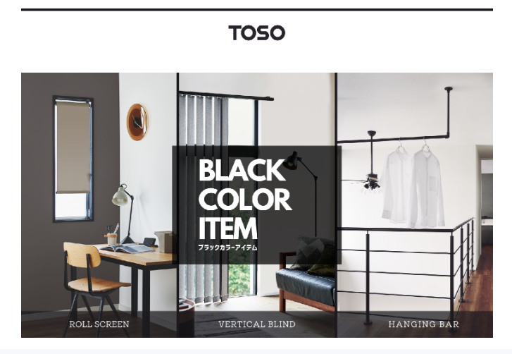 ブラックカラーアイテムはインテリアの定番人気に!ブラックカラーの建材や家具と窓回りのアイテムをブラックで合わせると統一感のある空間を演出できます!