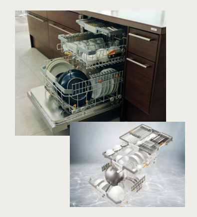 最小使用水量6.0L(幅45㎝)/6.5L(幅60㎝)センサーウォッシュプログラムでは、最小水量で理想的な洗い上がりとなります。また、余熱を効果的に利用した独自の乾燥方式で省エネを実現します。