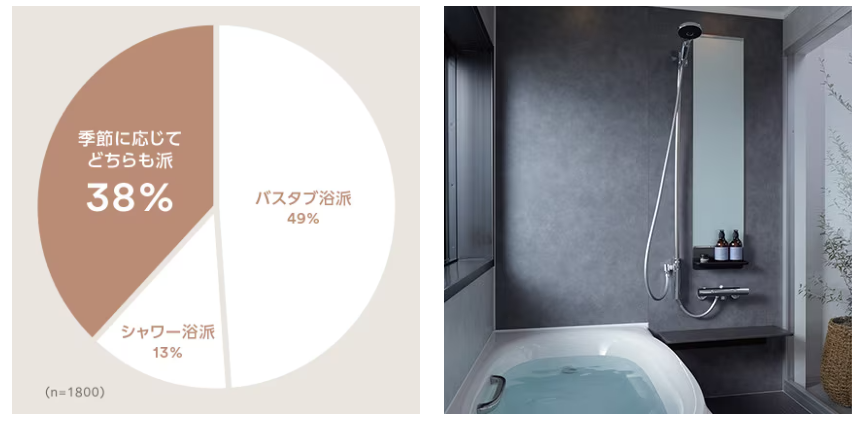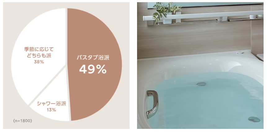 季節によってバスタブ入浴とシャワー浴を使い分けるどちらも派は38%。夏場はシャワー浴でさっぱりと、冬場はバスタブ浴でしっかり温まると使い分けをされている方も多いようです。